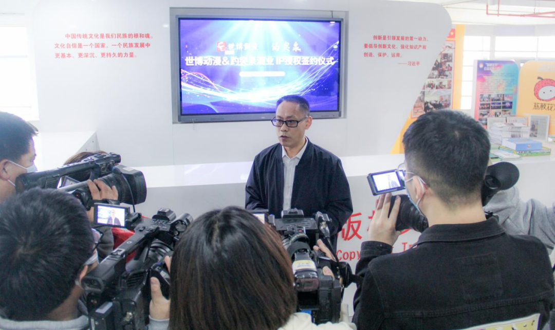 世博动漫董事长王振华接受记者采访:此次授权合作谈得非常顺利,这是山东本土动漫企业迄今额度最大的一笔IP版权授权业务,助推了我省动漫版权赋能传统产业转型升级的进程,具有里程碑意义。未来,希望通过商业授权来整合上中下游文化产业链资源,打造出极具浓郁泉城文化特色的优秀IP,助力、赋能传统文化新活力的释放,全力推动济南优秀传统文化创造性转化和创新性发展,大力促进新旧动能转换和济南文化创意产业发展提质增效。