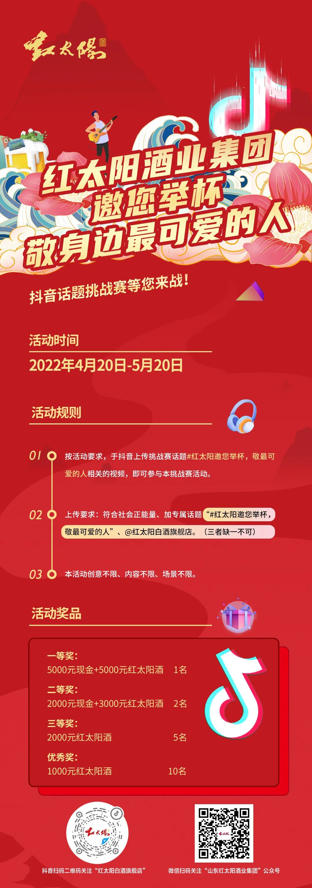 上传要求:符合社会正能量、加专属话题“#红太阳邀您举杯,敬最可爱的人”、@红太阳白酒旗舰店。(三者缺一不可)