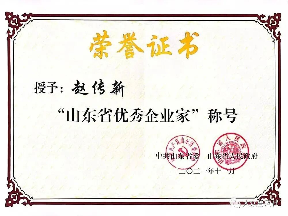 山东高标准弘扬企业家精神,该奖项授予层次高,以省委、省政府名义进行表彰。