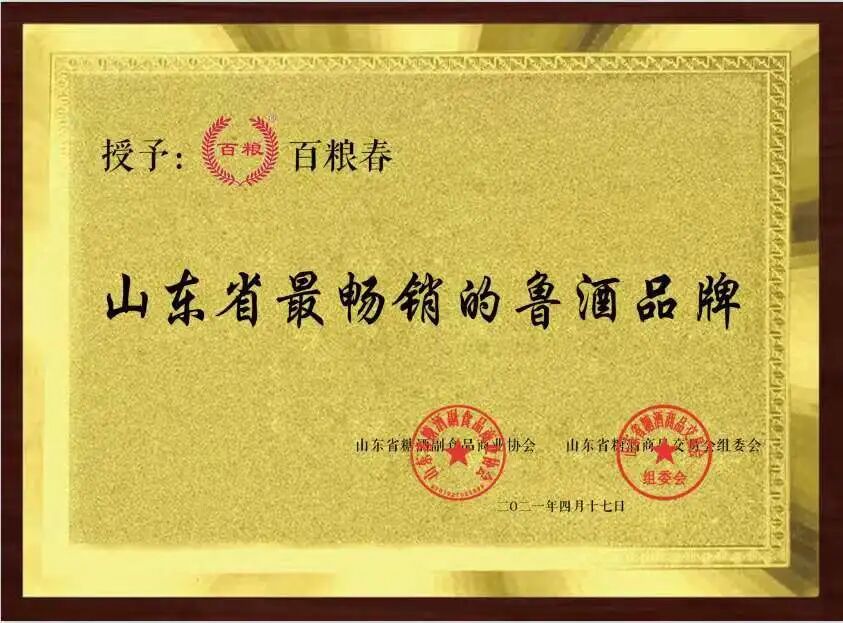 百粮春酒业荣获山东省最畅销的鲁酒品牌。
