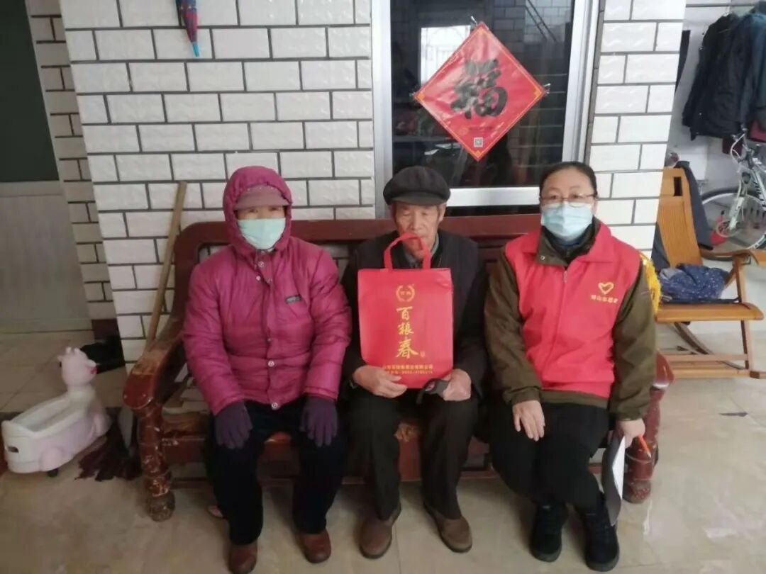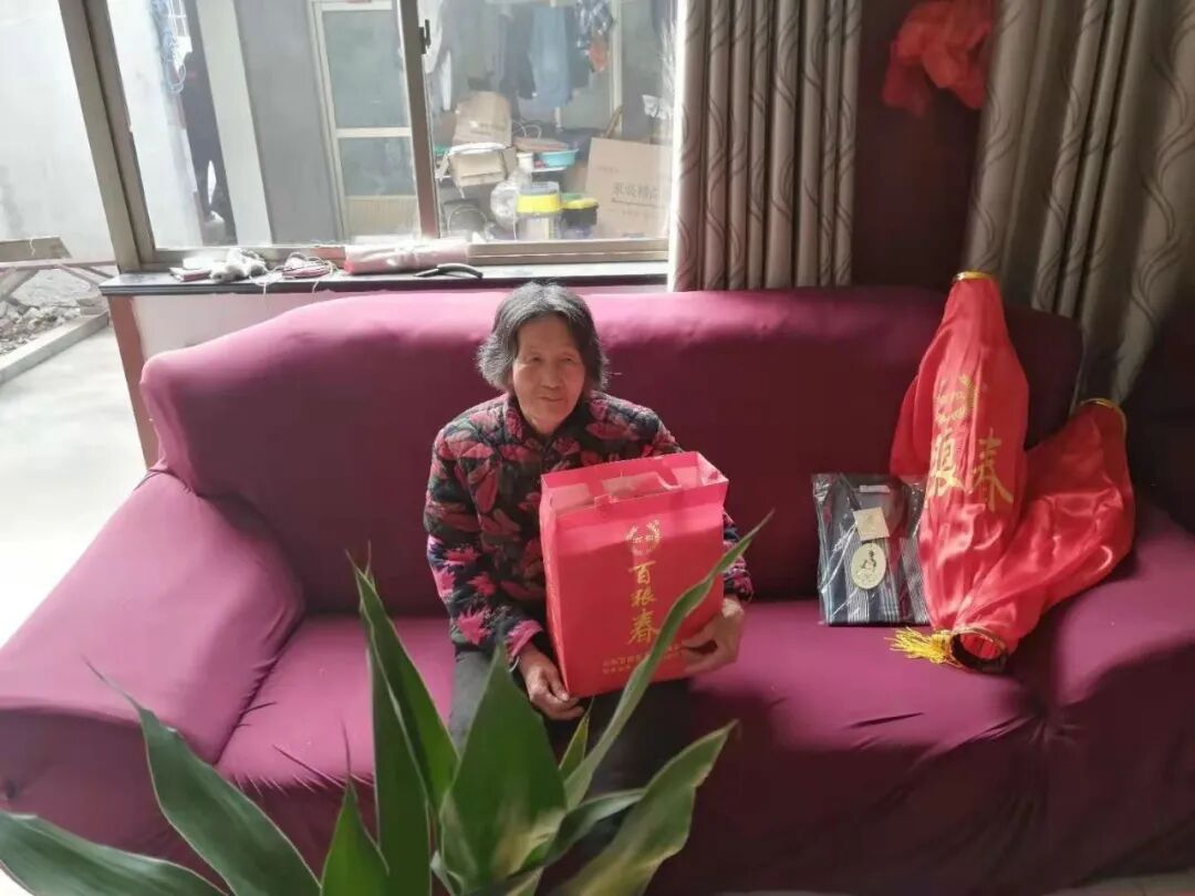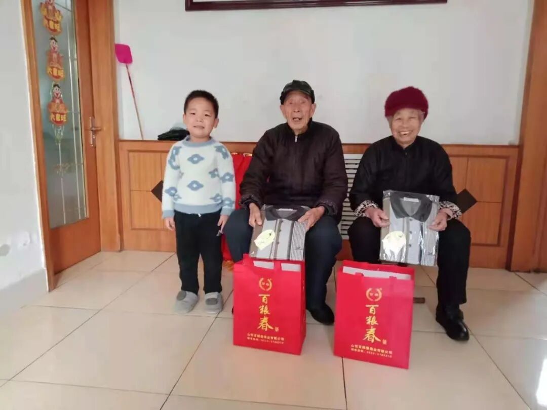 1月26日上午,傅山村党委副书记,村委会副主任周荣军、傅山村党委,村委委员寇成湖,百粮春酒业总经理尹婷婷,携百粮春酒业员工分批走进近180名傅山80周岁以上老人们家中探望老人,为他们送上大灯笼、百粮春32度新五星、63度木盒原酒、毛衫等过春节的礼品,并送上节日的祝福。老人们见证了百粮春走过的每一步,今天我们感恩老人一直以来的支持,提前给老人送祝福,祝老人新春快乐,健康长寿!