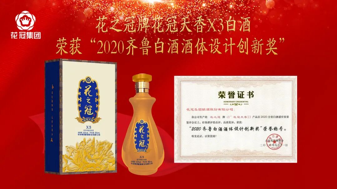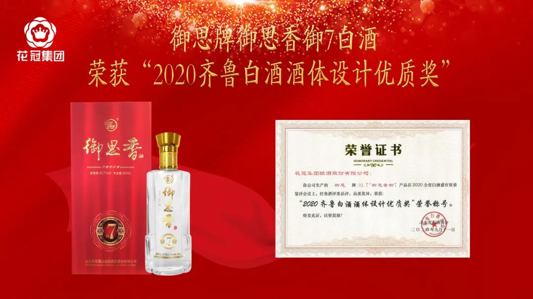 其中:花冠集团生产的金贵酱酒牌53°金贵酱酒冠20产品荣获“2020齐鲁白酒酒体设计金奖”荣誉称号;花之冠牌花冠天香X3白酒荣获“2020齐鲁白酒酒体设计创新奖”荣誉称号御思牌御思香御7白酒荣获“齐鲁白酒酒体设计优质奖”荣誉称号。