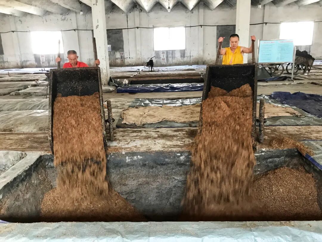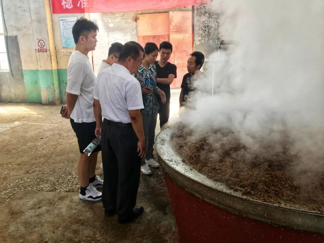 酿酒生产刚开始,孔府家党委副书记张希君,生产总经理王安京,生产总监、非遗传承人马强来到车间查看秋酿开工情况,经过酿酒技术领导品鉴之后,一致认为今年秋酿头排酒香味物质丰富,醇厚绵柔,回味悠长,品质上层,是不可多得的好酒。