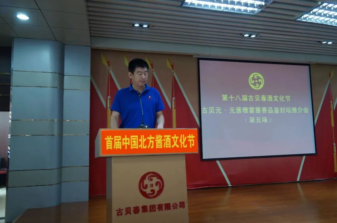 古贝春集团副总经理、营销公司总经理张洪昌介绍公司发展及封坛酒情况