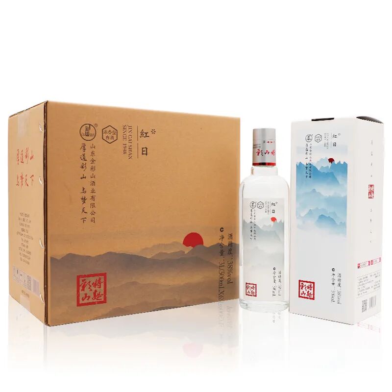 大国之酿、民族之红。红日酒清新脱俗的包装设计,灵感源于旭日东升,红霞漫天,以现代简约水墨山水画为主体,远处红日缓缓升起,近处“彩山特曲”红方印,红日初升,其道光明,代表新生力量活力初现,寓意在生活、事业的道路上都会充满霞光。