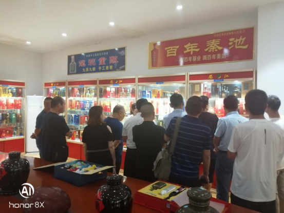 8月16日,山东奥迪尔生物集团党支部书记、潍坊市社会组织培育中心党委委员、潍坊爱心义工公益服务中心文化发展部部长张海龙邀约潍坊各界白酒消费领袖23人到秦池酒业参观考察,大家先后参观了厂区秦池酒文化展馆、鲁酱壹号车间、酿造技艺馆、鲁酱壹号储备库、酒仙园、三聚成酒韵馆等,在沉浸式体验馆亲自动手勾调了一瓶属于自己的白酒。