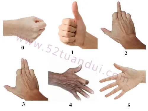 千百年来划拳手势也形成了独有的表示规则,如“拳拳都有大拇指”,零——拳头,一——大拇指,二——拇指+中指(切记不能是拇指+食指、拇指+小拇指,这两种就是不敬的表现),三——拇指+食指+中指,四——拇指+中指+无名指+小拇指,5——全出。