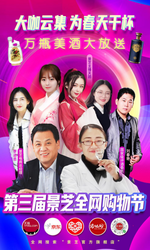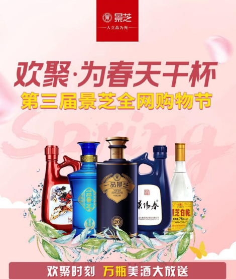 第三届景芝全网购物节从4月19日持续到4月23日,5天时间为您带来春季美酒福利,主播、大咖齐聚景芝直播间,直播间抽奖福利不断,带您秒万瓶美酒,满赠万瓶金质景阳春!京东、天猫、苏宁、拼多多、酒仙网搜“景芝官方旗舰店”,将喜欢的美酒带回家!