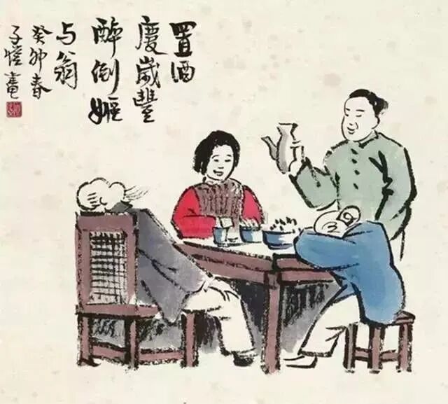 奶奶说:酒是粮食精,越喝越年轻。没错的,我使劲抽动鼻子,闻到的似乎就是院子里仓囤中,那些粮食的味道。温度上升,热气蒸腾,无数个酒分子在空气中挥发、弥漫,它们也缓缓地,进入了我的胸腔。酒燎好了。父亲将酒壶倾倒,斟出一盅。他端杯深抿,“吱溜儿”有声。酒咽下去了,他咂摸一下嘴儿,再深舒一口气:“哈——”似乎所有的酒滋味,都已经渗透了全身。原先的一身寒气也被这一口热酒逼出、分散,满身的疲惫也被这一口热酒化解、消融,就只剩了满屋子香喷喷热烘烘的酒气。父亲用手拈了一粒花生米,一边送进嘴里“嘎嘣嘎嘣”地嚼着,一边又用筷子夹了一根咸菜条,他腮帮蠕动,慢慢咀嚼。酒香合着菜香,还有父亲的心满意足,将这原本低矮黑暗的小屋子,烘托得明亮亮暖融融。许是因为酒劲上涌,许是因为热气上升,父亲的脸上,蒙上了一层浅浅的酡红。母亲瞅瞅父亲的脸庞,温柔地说:“少喝点吧……”父亲并不言语,他慢条斯理地拎起酒壶,又倒了一盅。两杯酒下肚,原本缄默着的父亲,开始高谈阔论。父亲一向识文断字,也算走南闯北,虽说沉重的生活让他有些寡言,但只要一沾了酒,他便一扫从前的沉郁,变得意气风发。我常说,不饮酒的父亲是杜甫,饮酒的父亲,是李白。是故乡的景芝酒,让父亲变得浪漫诗意。第一盅酒,父亲尚有“花间一壶酒,独酌无相亲”的落寞与寂寥;等到两杯下肚,便有了“长风破浪会有时,直挂云帆济沧海”的壮阔与豪迈;待到三杯见底,壶身渐轻,父亲便眉飞色舞,一派“仰天大笑出门去,我辈岂是蓬蒿人”的豪放与不羁。