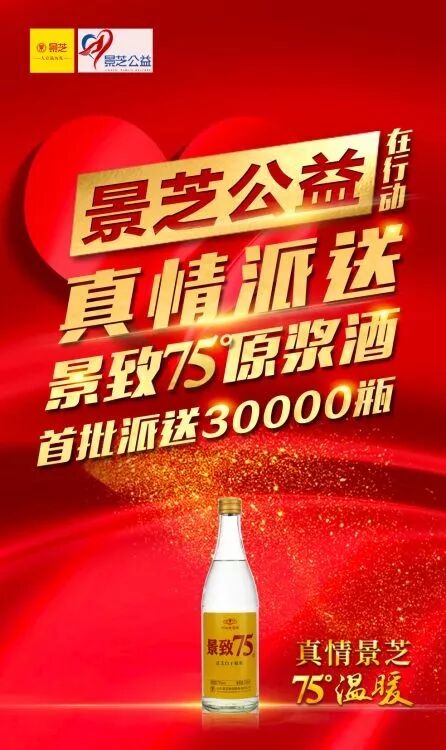 疫情就是命令,防控就是责任!疫情发生后,景芝酒业积极行动,于2月1日启动了“景致75景芝白干原浆酒”应急灌装。并通过景芝酒业发起成立的山东景芝公益基金会,全面启动向社会公众真情派送景致75(75°景芝白干)原浆酒,首批30000瓶,用于支援新型冠状病毒疫情防控工作,助力全社会抗击疫情。