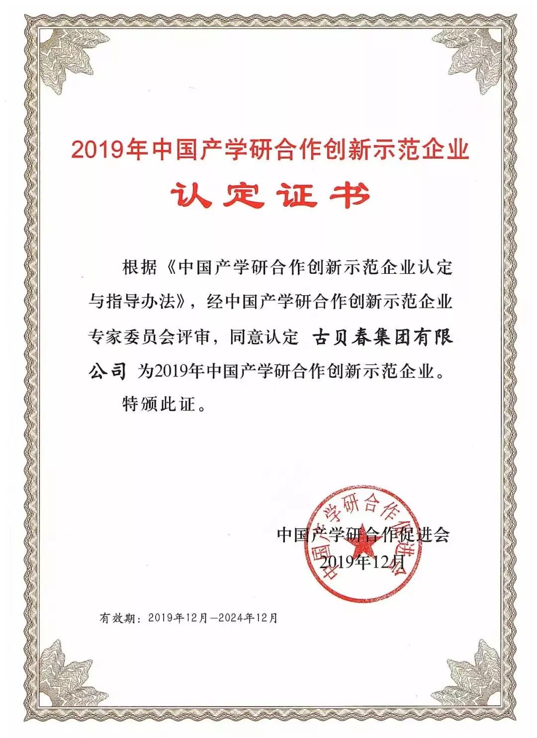 雄厚的科技实力,保障了产品质量的稳定提高。在山东省行评中,他们选送的“52度与42度水晶白版”双双斩获“山东省白酒酒体设计金奖”“高端鲁酒标志产品”称号,46度古贝元白版获“山东省白酒感官质量奖”“52度水晶白版的开发研制”项目获“山东省轻纺行业职工优秀技术创新成果奖”。据统计,公司在自主创新、机械化酿造等方面已取得近50项科研成果,彰显了企业在白酒技术领域的领先地位。2019年12月,第十三届中国产学研大会在北京召开,古贝春集团有限公司被认定为“中国产学研合作创新示范企业”,全国白酒企业仅两家入围。