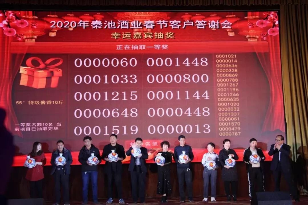 一曲高亢嘹亮的歌曲之后,紧张刺激的抽奖环节将此次答谢会推向了高潮。本次答谢会奖项共为六项,奖品从六等奖到一等奖囊括了秦池特曲Q15、东镇1032、4升青花韵原浆、5斤1958酒、龙琬重酿·鸟语花香以及55°特级酱香,获奖人数千余名,其中一等奖获得者由山东秦池集团董事长胡福东先生亲自开奖并颁发礼品。