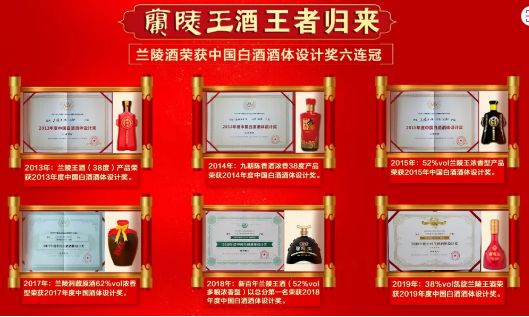 2019年7月,在中国食品工业协会国家级评委年会上,由山东兰陵美酒股份有限公司选送的38度凯旋兰陵王酒以优异的成绩脱颖而出,成功斩获“2019年度中国白酒酒体设计奖”。这是兰陵酒第六次夺魁,强有力证明了山东兰陵美酒股份有限公司的企业实力和产品品质,同时也体现了公司技术创新和科研创新达到了一定的高度,在中国酒行业中的酿造水平名列前茅。