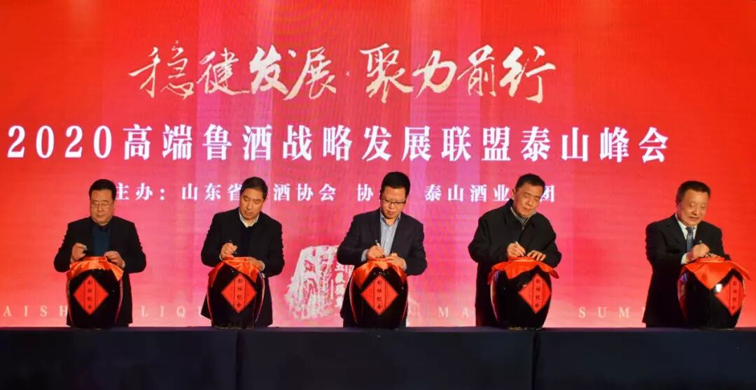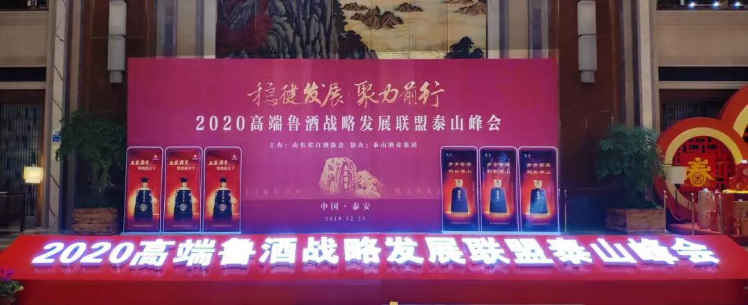 2019年12月25日,“2020高端鲁酒战略发展联盟泰山峰会”在泰安市宝盛大酒店盛大召开,中国酒业协会副秘书长甘权,山东省白酒协会会长姜祖模,山东省糖酒副食品商业协会会长薛剑锐,泰安市人民政府副市长成丽,泰安市政府副秘书长田萌,泰山酒业集团董事局主席、党委书记马西元,泰山酒业集团股份有限公司董事长张铭新,以及趵突泉、云门、花冠、景芝、国井、兰陵、古贝春、孔府家、百脉泉等山东省白酒骨干企业领导,来自全国各地的优秀经销商代表,国家、省市级新闻媒体代表五百余人参加了本届峰会。