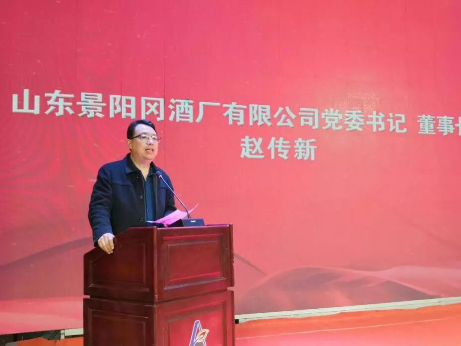 山东景阳冈酒厂有限公司党委书记、董事长赵传新首先上台致辞,他详细分析了当前经济下行形势和日趋激烈的白酒行业竞争趋势,回顾了近年来企业在质量提升、市场营销、深度管理等方面工作所取得的成绩。赵总表示,山东景阳冈酒厂有限公司始终遵循企业长远发展规划,坚持做良心企业;始终推进实施“质量兴厂”战略,坚持做良心食品;始终维护核心经销商利益,坚持厂商共赢。山东景阳冈酒厂有限公司将持续加大对提升产品质量的投入,持续加大对调整产品结构的投入,持续加大对核心市场的投入,以更加优质的产品和服务,打造强势品牌、实现互利共赢。