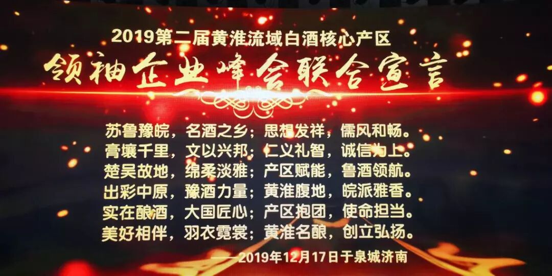 2019年12月16~17日,在美丽的泉城济南召开了第二届黄淮流域白酒核心产区领袖企业峰会。本届峰会由中国食品工业协会白酒专业委员会、江苏省食品工业协会、山东省食品工业协会、河南省食品工业协会、安徽省食品行业协会联合举办。黄淮流域白酒核心产区领袖企业领导齐聚一堂,相互交流发展经验。