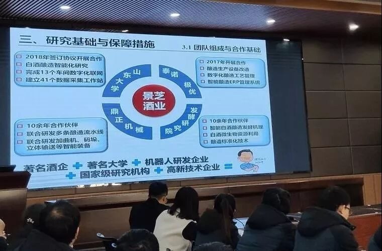 景芝酒业作为省重大科技创新工程的承担单位,联合国内自动化智能化领域的顶尖专家,以及研究、制造、应用等单位,组成了专业全面、研发实力强的项目团队,期望合作的六家单位互相协调,共同推动酿造机器人智能作业系统项目的顺利实施和创新应用,为中国传统白酒酿造生产、白酒品质提升及高质量发展贡献力量。