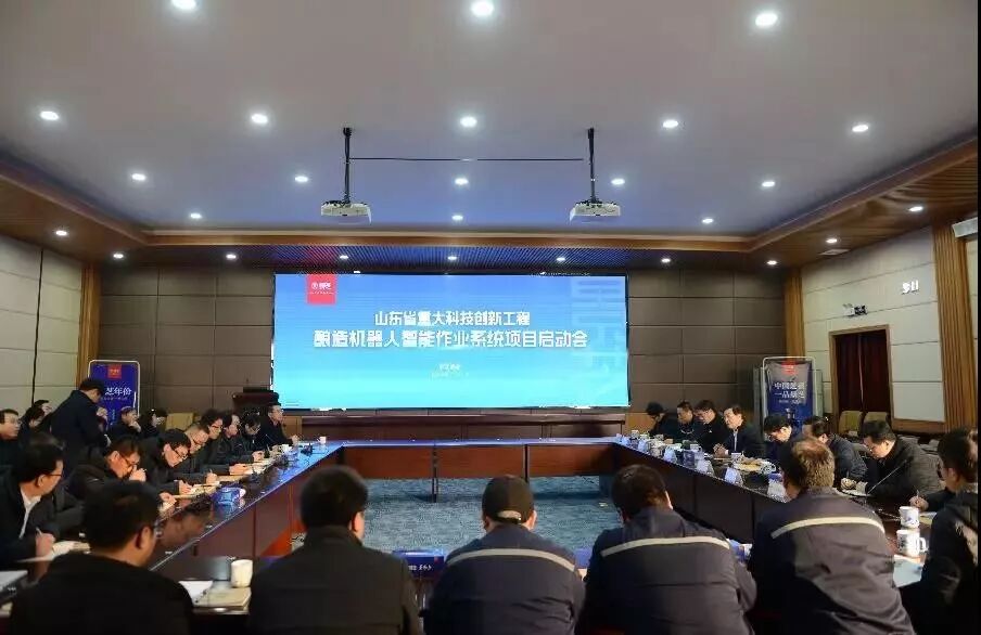 12月7日,山东省重大科技创新工程“酿造机器人智能作业系统”项目启动会在景芝酒业东湖会议室举行。山东省重大科技创新工程“酿造机器人智能作业系统”由景芝酒业承担,联合山东大学、中国食品发酵工业研究院、安丘市鼎正机械设备有限公司、烟台泰诺软件有限公司、济南极优智能科技有限公司共同研发。