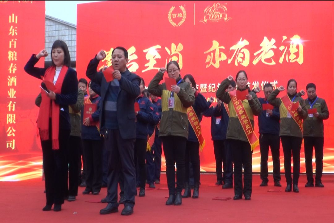 11月30日,百粮春首届老酒文化节暨纪年老酒首发仪式于山东百粮春酒业有限公司盛大举行,中国白酒业泰斗、中国酒业协会白酒专家组原组长、现任中酒协专业技术委员会副主任、第3~5届全国评酒白酒国家评委梁邦昌,山东省工业和信息化研究院党委委员、副院长郭友武,山东省糖酒副食品商业协会会长薛剑锐,山东省白酒协会会长姜祖模,山东省工业设计协会会长蔡建宁,山东省信用协会副会长、淄博市信用协会会长赵玲,山东省糖酒副食品商业协会秘书长李明信,山东省食品工业协会秘书长李琴,高新区工委副书记、高新区管委会副主任袁辉,高新区市场监管局局长徐斌治,高新区地方事业局局长雷兆河,高新区经济发展局局长张家奎,保税物流园区党委书记李凯,保税物流园区管委会主任关东红,高新区市场监管局副局长李家传,淄博市广播电视台党委委员、副台长邢军,淄博市广播电视台广告中心总经理牛长辉,张店区商务局局长王建军,张店区商务局副局长颜庭军,高级工程师、山东省白酒品酒委员、原黄河龙集团生产技术副总经理魏守明,合肥谏策营销管理咨询有限公司总经理刘圣松,全国劳动模范、傅山村党委书记彭荣均,傅山村党委副书记、村委会主任周荣军,傅山村党委委员、村委委员傅海燕,山东百粮春酒业有限公司负责人尹婷婷,山东百粮春酒业有限公司副总经理彭希顺,淄博市领头企业领导,傅山集团、傅山村“两委”班子成员,傅山集团公司各兄弟企业领导,百粮春酒业核心经销商,几十家媒体代表,齐聚百粮春酒厂,共同见证百粮春纪年老酒封坛仪式!