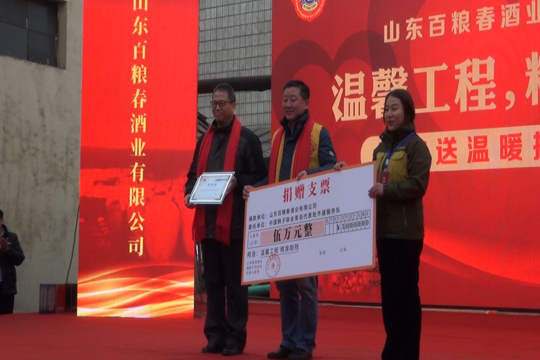 百粮春酒业在企业发展的同时,坚持服务社会、奉献社会的企业宗旨,践行社会责任,促进社会和谐发展。活动现场,百粮春酒业捐款五万元给全国性民间慈善服务团体“中国狮子联会青岛代表处齐盛服务队”,作为中国狮子会“温馨工程,精准助残”春节送温暖活动的服务经费,在淄博市残疾人联合会的支持帮助下,与狮子会齐盛服务队一起,深入残障困难家庭,为他们送一份新春的祝福。近年来,百粮春酒业赞助动漫展、年会、太极表演队、冬泳比赛、绿色骑行大赛、广场舞大赛、象棋比赛等大众喜闻乐见的活动;连续多年带领傅山小学、傅山幼儿园的家庭畅游科技馆,让孩子们走近科学,并通过国际领先的体验式学习,提高独立自主等各种能力,更加健康快乐地成长;走进东坪小学关爱留守儿童,为他们带去生活保障、日常照料服务、精神慰藉,传递“爱心救助”的奉献精神,凝聚社会力量,传递正能量;开展慈善活动——助老服务,连续多年每逢中秋节、重阳节、元旦、春节等节日,走访傅山村80岁以上老人及敬老院老人,为他们添置衣物、粮食、酒、春联、灯笼等物资;与市文明办联合策划,连续几年走访淄博市50位模范老党员和模范老人,送上“孝心礼”,了解他们的光荣事迹,积极宣传和弘扬老党员老干部艰苦奋斗的精神,践行社会主义荣辱观,积极参与推动着整个社会的道德进步;多次进行慈善募捐活动,传递孝心、传递正能量,做良心企业、责任企业。