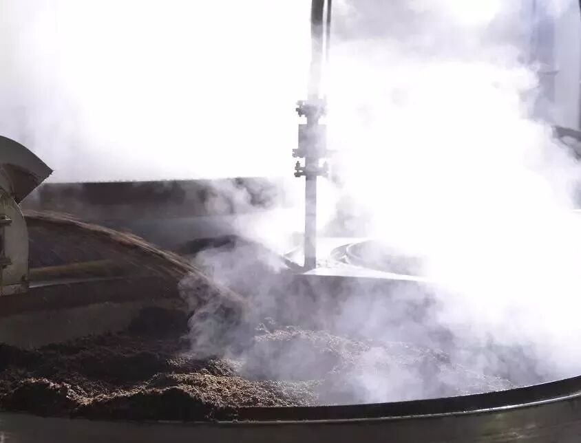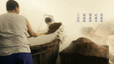 戳酒糟的场面十分难忘,工人合力将蒸锅上的铁盖子掀起,热气哗的腾出,漫溢到整个屋里。