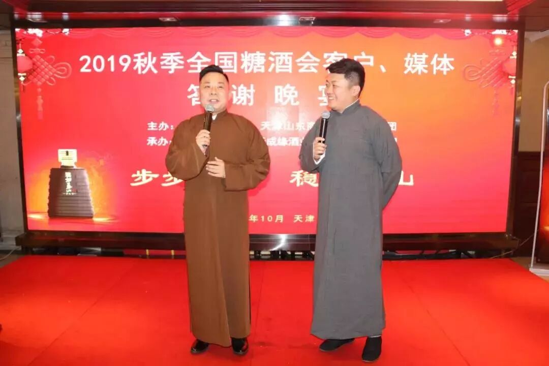 10月23日,由泰山酒业集团、天津山东商会、狗不理集团主办,天津泰安商会、天成缘酒业(天津)承办的2019年秋季全国糖酒会客户答谢晚会在天津狗不理大酒店隆重举行,天津市消防局原局长张铭德少将、天津市山东商会会长付宝伍、狗不理集团总经理张彦明、泰山酒业营销总监吴修刚等领导、媒体及经销商共200余人出席了本次活动。