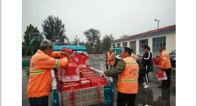2019年中秋节,洛北春集团向坚守在一线的辛勤“城市美容师”表达爱心,送去节日的祝福,发放洛北春酒和面粉。