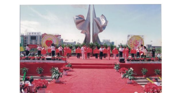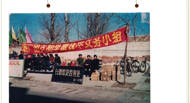 1990年,临邑酿酒厂学习雷锋活动月,上街为群众服务。
