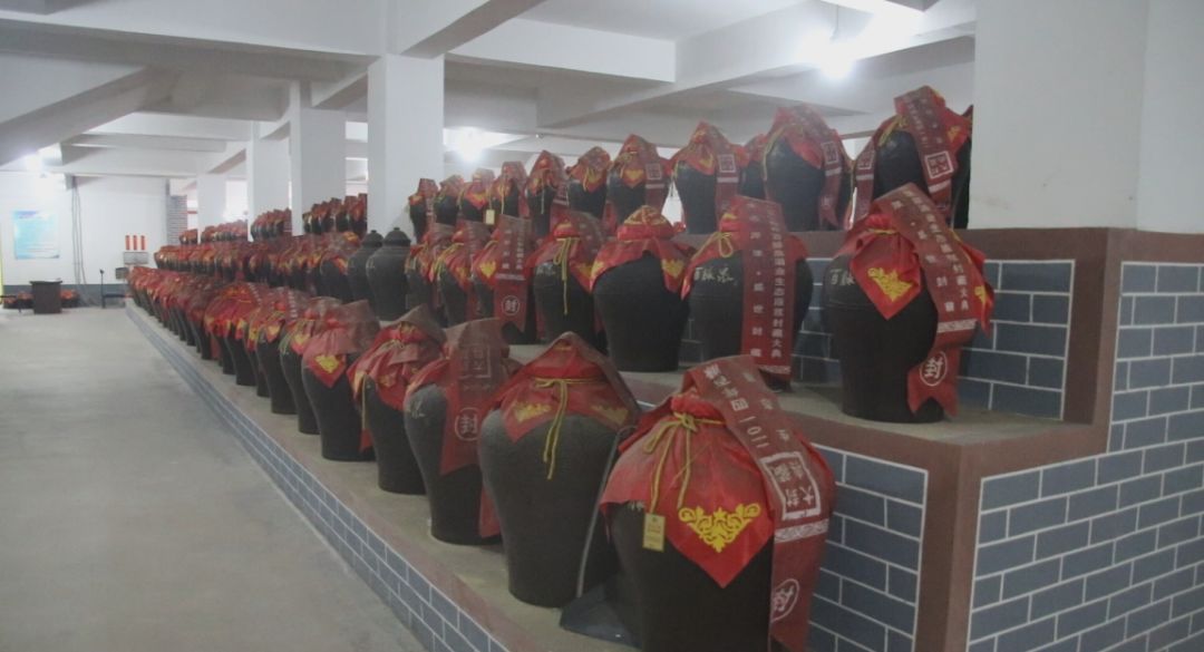 藏酒馆内摆放的是一坛坛的白酒,每坛珍酿都在静静地等待着时间带来的浓郁醇香。