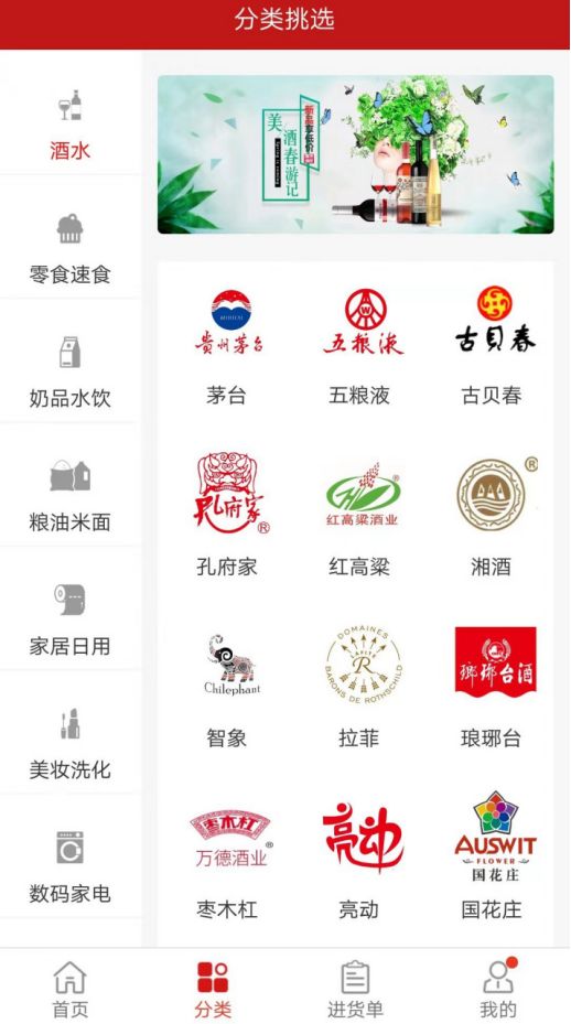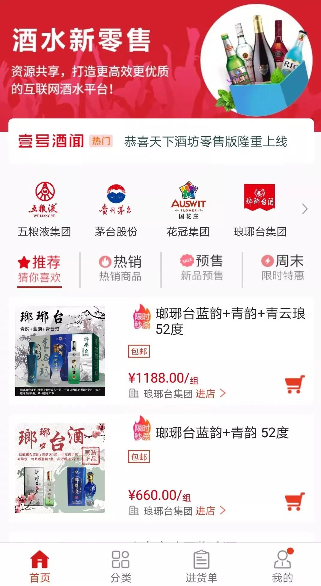 它的首页是各个厂家的酒类陈列,分为推荐和热销产品专区,同时也会有预售新品的摆放,店铺可以在上面自主下单,厂家收到订单就会快速配货发货。其作用是产品分类明确,可以快速找到自己想要的产品。另外,使用《天下酒坊云采》点开进货单,能显示进货详情和总额,相当于购物车的作用,在购物过程中,可单品也可团购,还能随时查看店铺的进货详情和待发货情况,收到货后不满意还会有退货退款的功能。