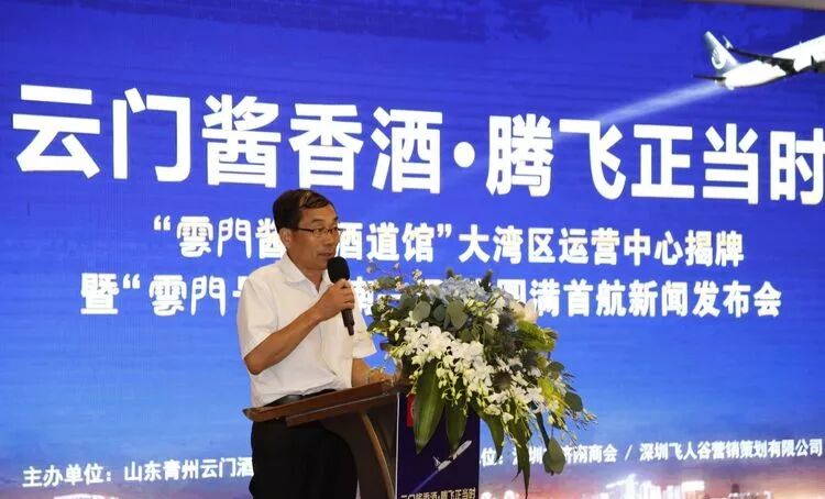 青州市委常委、宣传部部长陈同洲对“云门号”飞机的圆满首航和云门酱香酒道馆大湾区运营中心的成立表示祝贺。陈部长表示,“云门号”飞机圆满首航,在世界上最大的湾区经济带粤港澳大湾区成立云门酱香酒道馆大湾区运营中心,这是云门的骄傲,也是青州的自豪。“云门号”飞机的首航和云门酱香酒道馆运营中心的成立,意味着云门酱酒多了一张流动的“名片”,也同样意味着青州多了一个宣传的媒介,对于云门酒业进一步打响“云门酱香”品牌,提升青州市的城市知名度具有十分重要而深远的意义,有利于助推青州经济社会高质量发展。希望云门酒业能借“云门号”飞机高大上的高效传播,借助云门酱香酒道馆大湾区运营中心的平台,积极创新营销模式,奋力开拓市场,为鲁酒乃至中国白酒贡献新的力量。