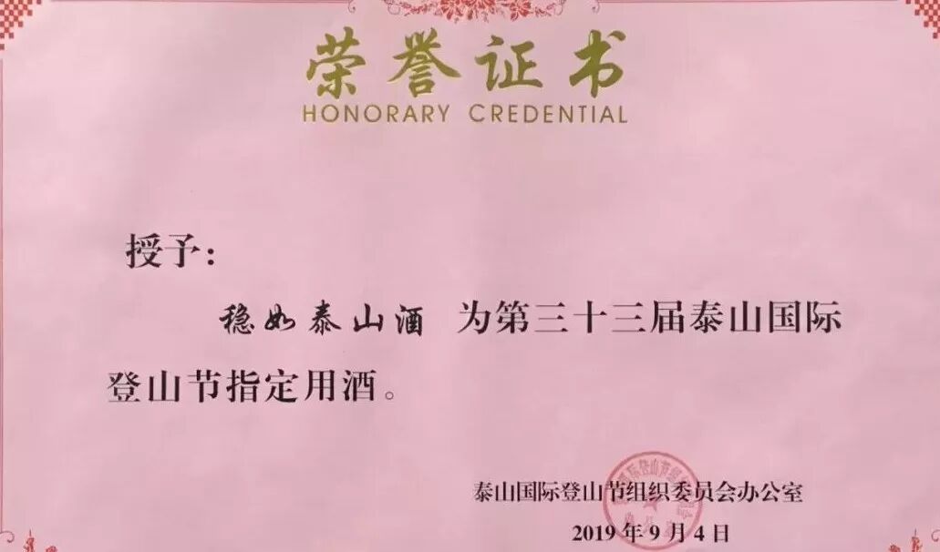 泰山酒业集团集泰山之灵气、山水之精华,承载着深厚的历史积淀和悠久的文化传承。作为与泰山最具渊源的东道主,泰山酒业集团牵手泰山国际登山节,其蕴含着泰山文化、易经文化和小窖文化的“稳如泰山酒”,被选定为第三十三届泰山国际登山节唯一指定用酒,为国内外的登山健儿加油助威。