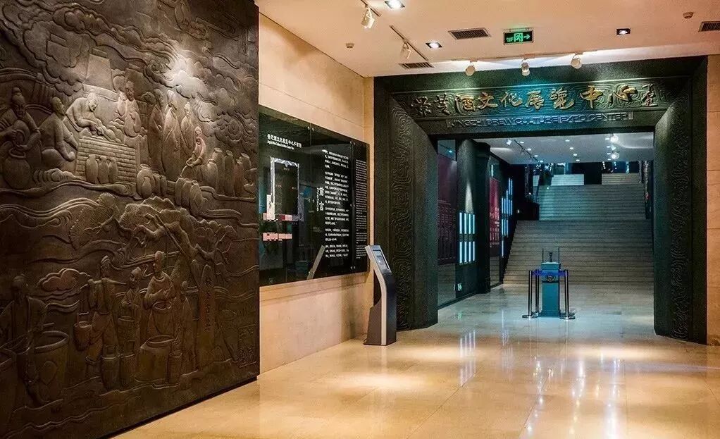 走进酒之城,可以看到恢弘的铜壁上镌刻着酿酒过程的图案,人物栩栩如生。步入景芝酒文化展览中心,处处是风景,处处也是源远流长的酒文化。从大汶口文化的古老酒器,到偌大的美酒地图,再到景酒发源的松下古井……这里的一切都像是穿越了时空,让人瞬间就置身于酒的世界。