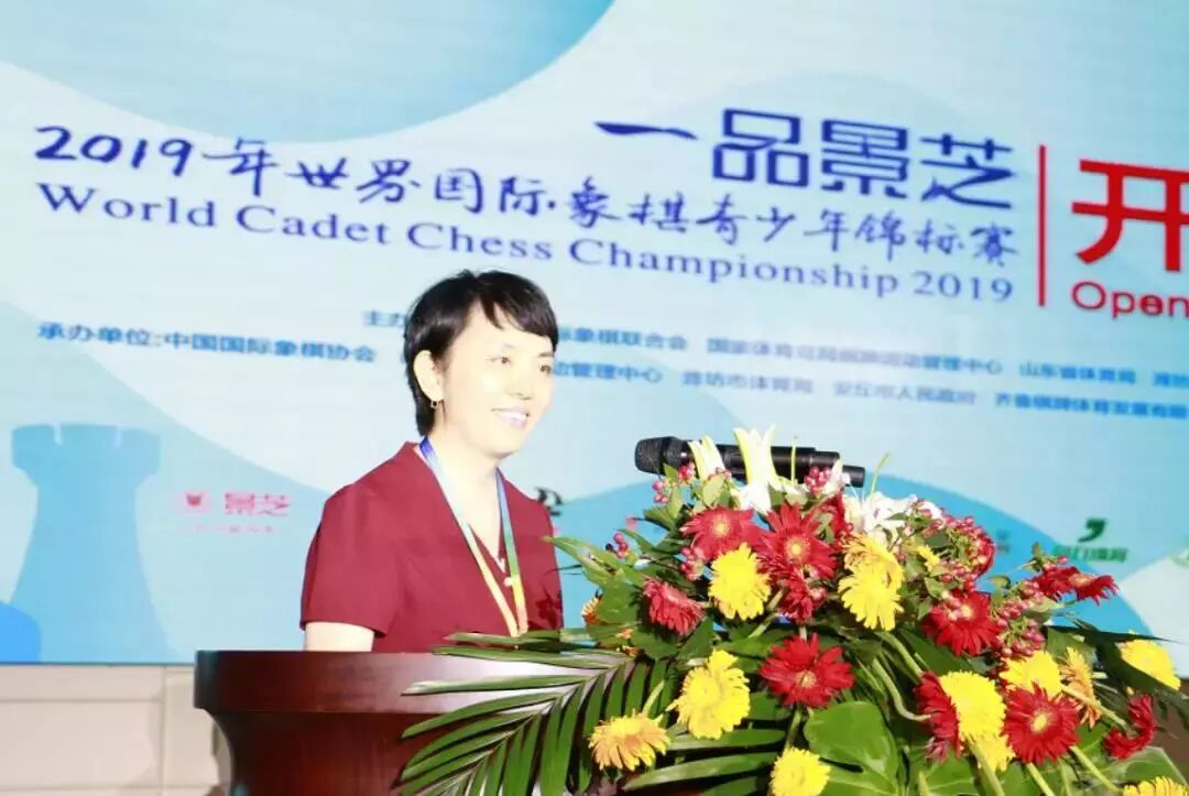 开幕式上,潍坊市副市长李平女士致欢迎辞,首先代表赛事组委会、潍坊市人民政府,向2019年世界国际象棋青少年锦标赛开幕表示热烈祝贺,向来自世界各地的裁判员、教练员、青少年运动员及陪同人员表示诚挚的欢迎!本赛事代表着世界青少年国际象棋的最高水平,今年首次进入中国并落户潍坊,必将极大地推动潍坊乃至中国的国际象棋推广与普及,让更多青少年受益。