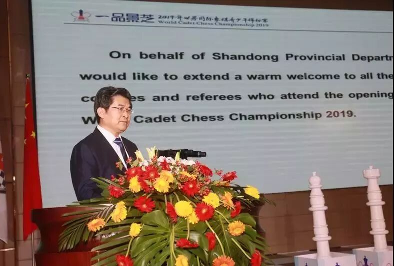 山东省体育局副局长王延奎先生在致辞中表示,2019年世界国际象棋青少年锦标赛的举办对于充分展示齐鲁发展和人文特色,推动全省体育特别是棋类运动高水平发展具有重要意义。