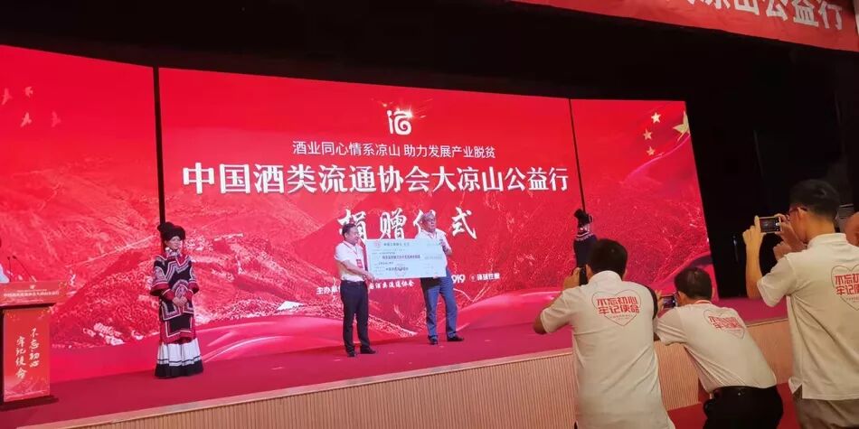 2019年8月18日,由中国酒类流通协会主办,1919、环球佳酿协办的大凉山公益行活动在西昌举行。本次公益行以“酒业同心情系凉山,助力发展产业脱贫”为主题,共募集善款678.5288万元,其中,企业认捐558.98万元,个人认捐119.5488万元。