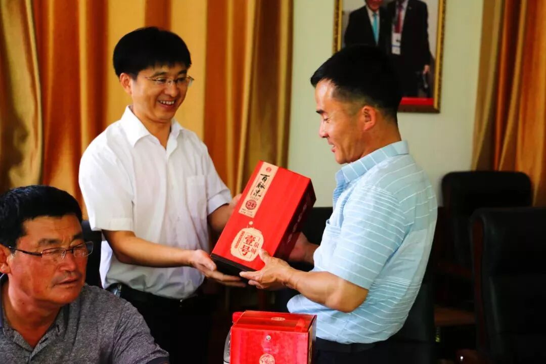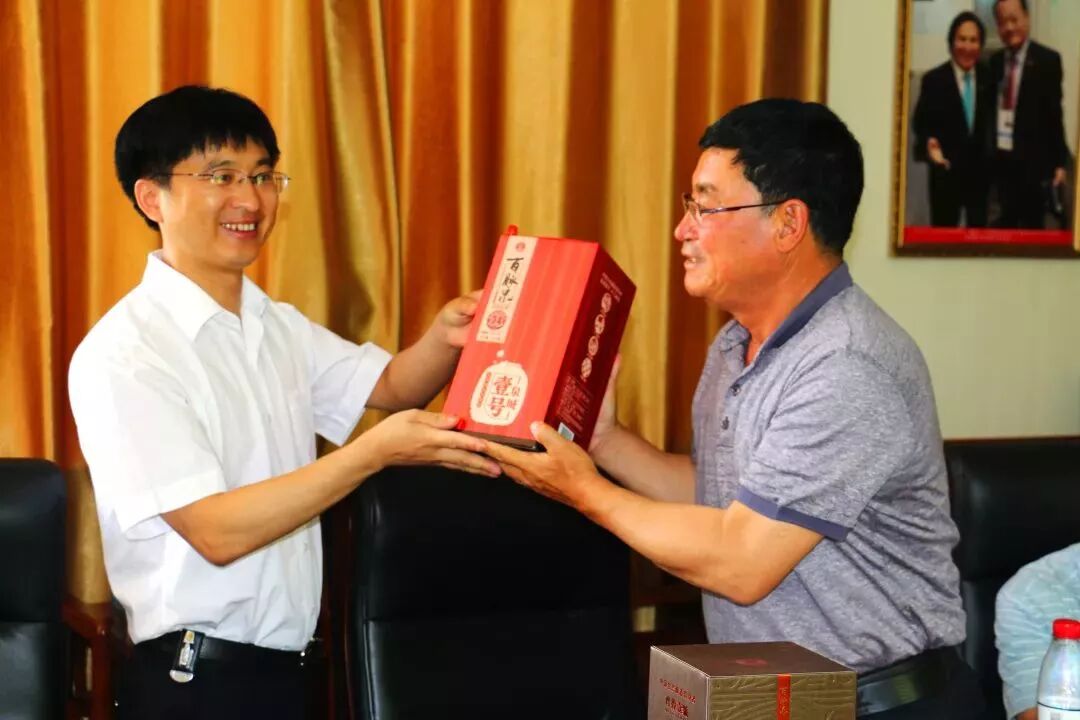交流会上,百脉泉酒业销售公司总经理杜祥宝代表公司向远道而来的朝方朋友表示了热烈的欢迎,并为他们赠送了中国传统的手工艺品竹扇和百脉泉酒业旗下泉城壹号、齐鲁壹号系列产品。