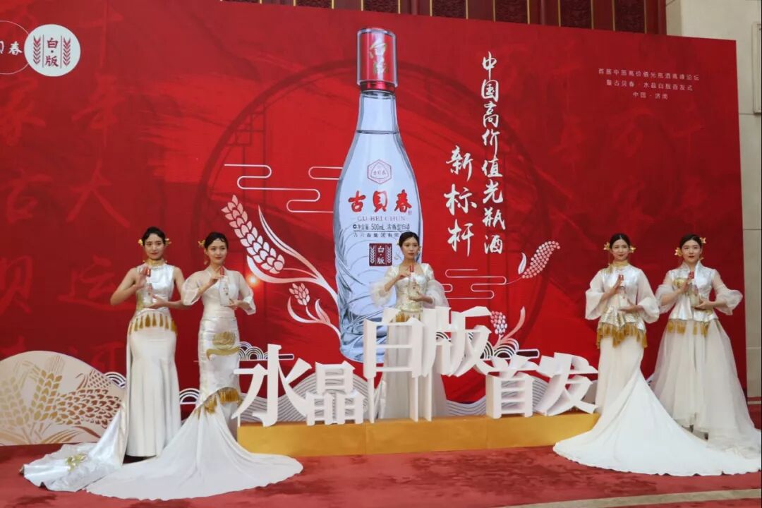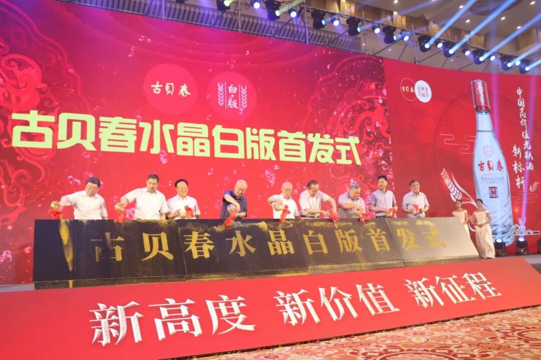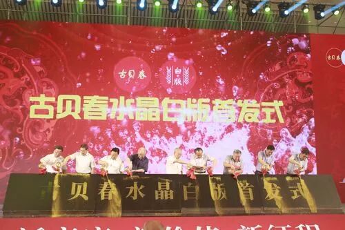 2019年6月11日下午,历经20年品质积淀、坊间一度热议的古贝春“水晶白版”酒终于在济南揭开她神秘的面纱——在济南山东大厦金色大厅,由中国酒业协会指导,山东省食品工业协会、山东省白酒协会、山东省糖酒副食品商业协会主办,古贝春集团有限公司承办的,以“新高度、新价值、新征程”为主题的“首届中国高价值光瓶酒高峰论坛暨古贝春水晶白版首发式”隆重举行。行业协会领导、著名白酒专家、20余家媒体朋友、古贝春经销商代表、古贝春集团领导班子成员400余人参会,共同见证了古贝春这一高端光瓶酒的问世盛典。此次会议标志着古贝春携手“水晶白版”和“中度酱香”双白版步入高端光瓶酒2.0时代。