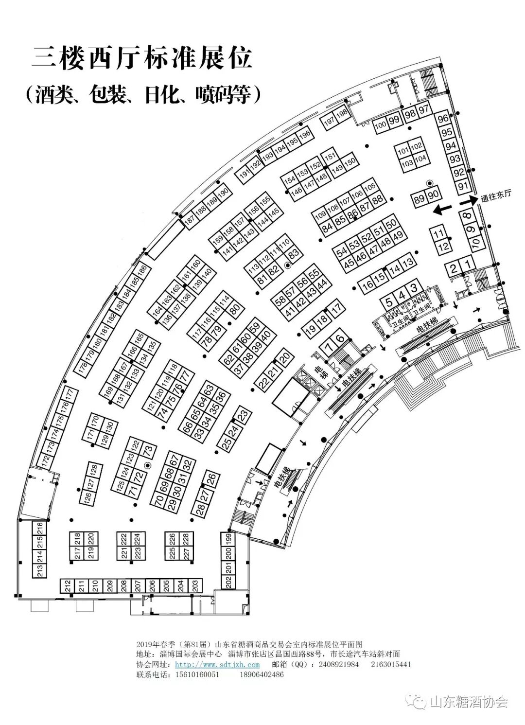 一、本届会议由省糖酒副食品商业协会主办,张店区人民政府承办,国井集团和山东新星集团协办。会议主会场设在淄博国际会展中心,淄博国际会展中心展位包括特装展位、室内标准展位(3X3)、室外标准展位(3X3)和一桌两凳展位。本届会议的室内标准展位实行分区布展,具体划分为:三楼东厅标准展位安排为食品、饮料、乳品等行业展区,三楼西厅标准展位安排为酒类、包装、日化、喷码设备等相关行业展区。特装展位、D馆标准展位、室外标准展位、一桌两凳展位不分区。会议期间各企业的宣传、展位由我会统一规划、安排。