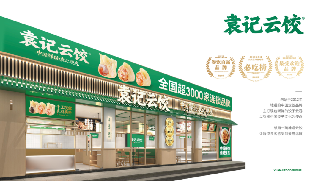 中式快餐模式的饺子馆和馄饨铺可以说是最接地气的细分赛道,店铺数量也几乎占据了整个饺子行业的半壁江山。提到饺子就不得不说袁记云饺,袁记云饺成立之初至今,一直带着纯正老广州的地道味道广式饺子云吞。自主研发出符合现代饮食习惯的产品,以新鲜、健康、营养、皮薄馅大的饺子云吞广受消费者们的青睐,迅速占领市场。现今全国已有近3000余家连锁门店,覆盖160多个城市,成为全国生面行业的知名品牌。