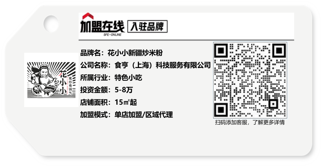 花小小新疆炒米粉是食亨上海科技服务有限公司旗下的餐饮品牌,致力于线上品牌打造,第一家店诞生于2020年,于3月10号北京望京店正式开业,不到30天售卖销量达9999+。