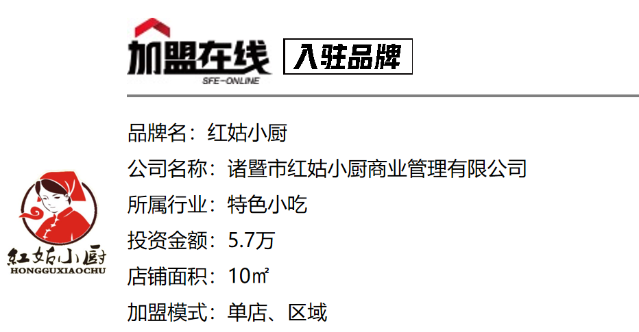 红姑小厨(浙江省诸暨市红姑小厨商业管理有限公司)成立于2017年8月15日,是一家坚持以健康、食尚、亲民为主要特色的餐饮连锁品牌。红姑小厨主打烤串、炸串及特色小吃,几年来不断优化门店模型,一手抓顾客认可度,树立质高价优的品牌形象,一手抓出餐速度,提高单位坪效人效,从而确保单店盈利能力。