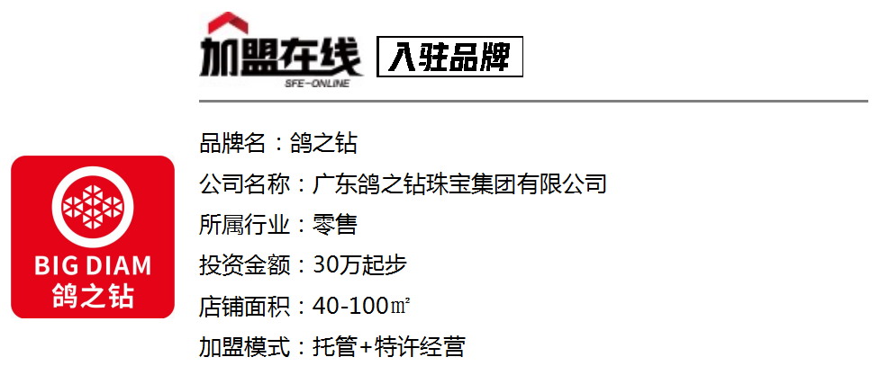 鸽之钻是鸽之钻珠宝集团旗下运营的钻石品牌,致力于以"绽放女性光芒,传递爱与幸福"的品牌战略发展方针,打造中国最具性价比的珠宝品牌。