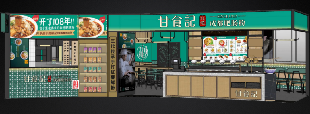 在2018年“大众点评”城市必吃榜投票中,肥肠粉成为与火锅、串串齐名的成都三大必吃美食之一,而甘食记也成为肥肠粉品类中最受欢迎的第一品牌,在成都、深圳、天津、西安、郑州、沈阳、大连、哈尔滨、长春开设的58家门店,每年累计售出招牌肥肠粉单品500万份。
