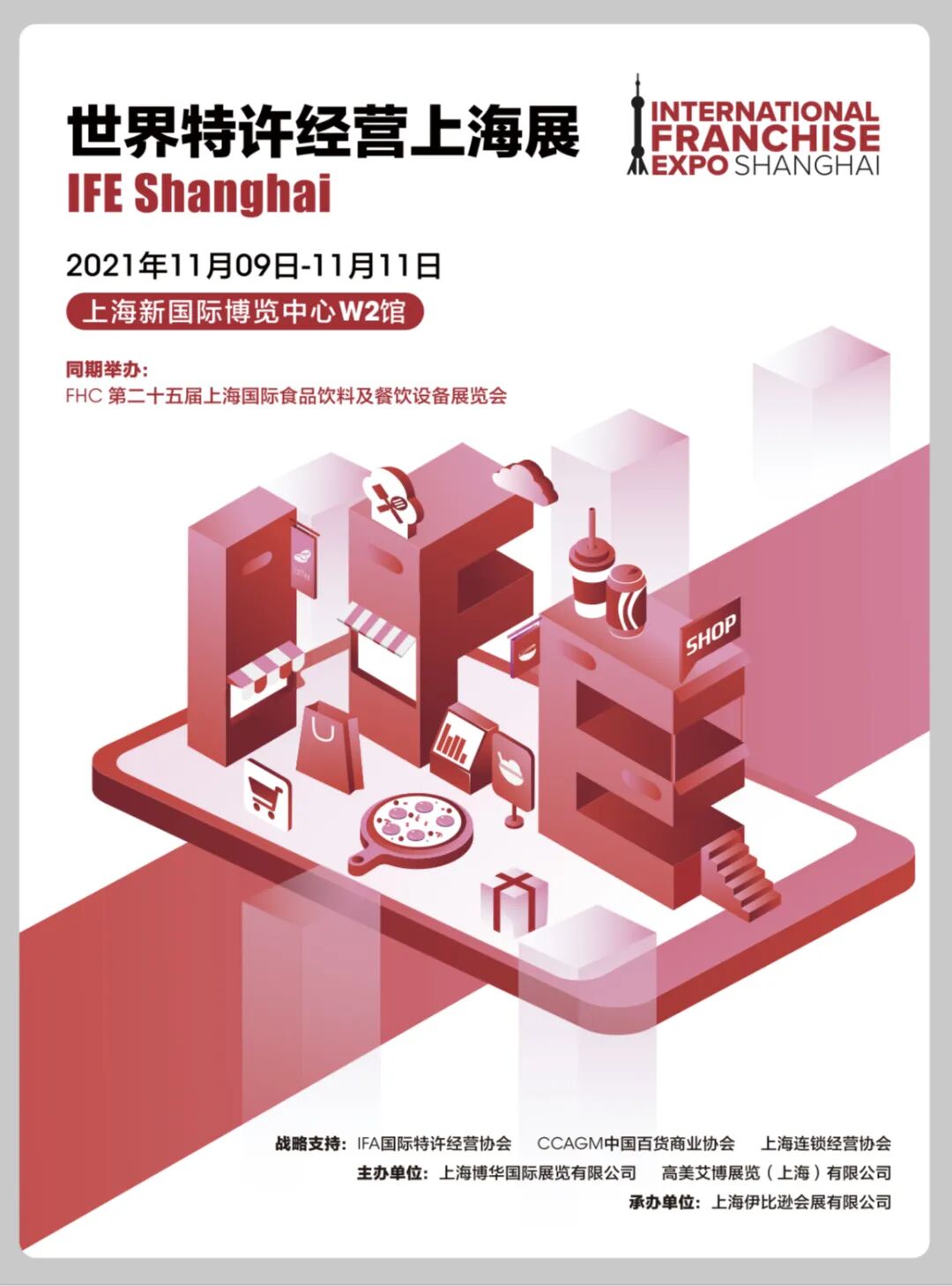 SFE第34届上海国际连锁加盟展将于2021年11月9日-11日在上海新国际博览中心举办,同期举办Hotel Plus上海国际酒店及商业空间展, IFE世界特许经营上海展览会。