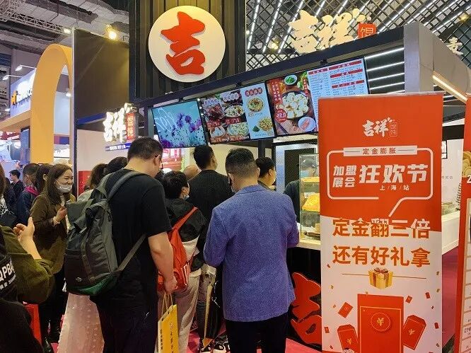 在这次加盟展上,吉祥馄饨为了完美呈现连锁门店的特色与优势,将黑金店“搬”来了现场。众多有意向的创业者,纷纷聚集在黑金店前,不仅对整体设计赞不绝口,也对网红蛋黄烧麦青睐有加。通过现场咨询与洽谈,创业者们都对吉祥馄饨依托“中央厨房、标准产品”实现“利益共享、风险共担”的经营理念非常认可,现场就有加盟商成功签约。