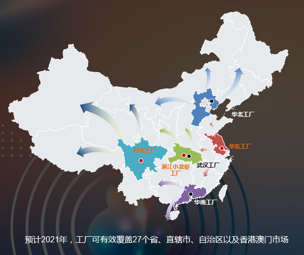 周黑鸭的特许经营模式,尤其是全托管式单店特许经营模式,得益于周黑鸭长达20年的积累。周黑鸭现有湖北武汉、河北沧州、广东东莞、江苏南通四大现代化工厂,正在稳步推进全国五大区工厂布局,辐射全国门店。