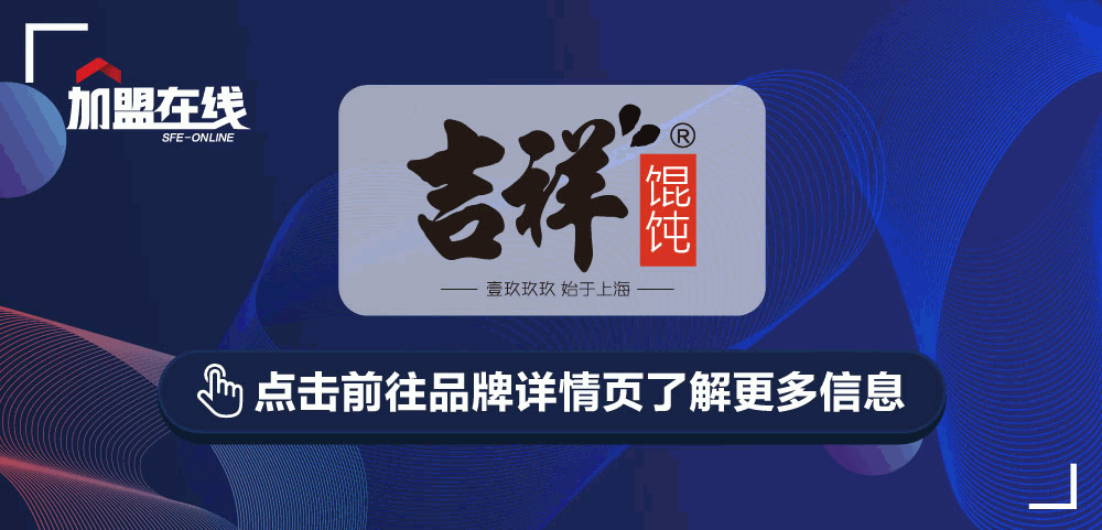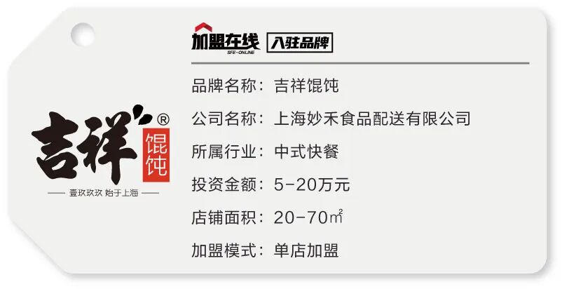 吉祥馄饨诞生于1999年,上海老街边一间由三个年轻人经营着的馄饨铺,毫不怠慢的食材、匠心独具、个大馅足的馄饨记录着上海的味道,吉祥馄饨也逐渐成为了上海人心中的老字号。如今,吉祥馄饨加盟已经覆盖40多个城市,数千家中式快餐店每天为顾客带来暖心之味, 也受到了各地人民的喜爱。
