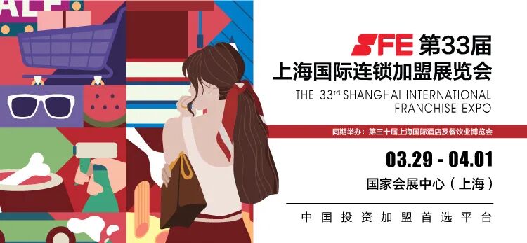 加盟投资风向标,SFE第33届上海国际连锁加盟展,2021年3月29日—4月1日,牵手大虹桥国家会展中心,更多精彩,敬请持续关注。