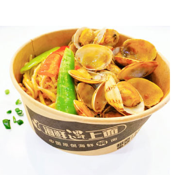 【海鲜遇上面】对传统的面类快餐进行升级重做,与海鲜相结合,通过供应链优势,将客单控制在20—30元这一市场普遍能够接受的价格区间,为消费者呈现一份吃得好吃得饱的极具性价比的美味快餐。